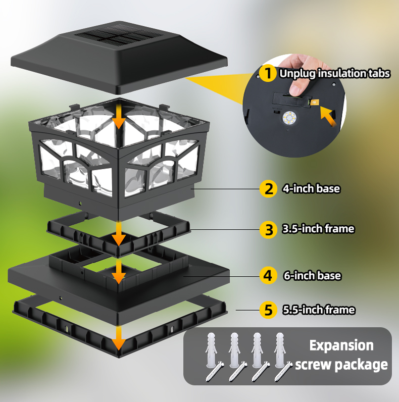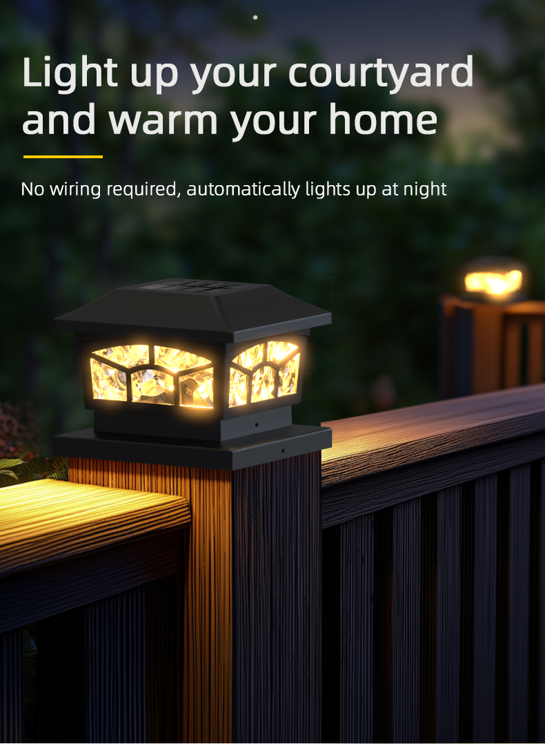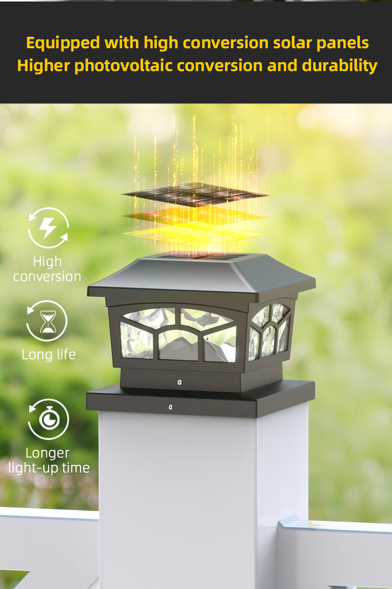 Yksityiskohdat8 LED-aurinkopylväsvalaisimemme vedenpitävät ulkovalot: