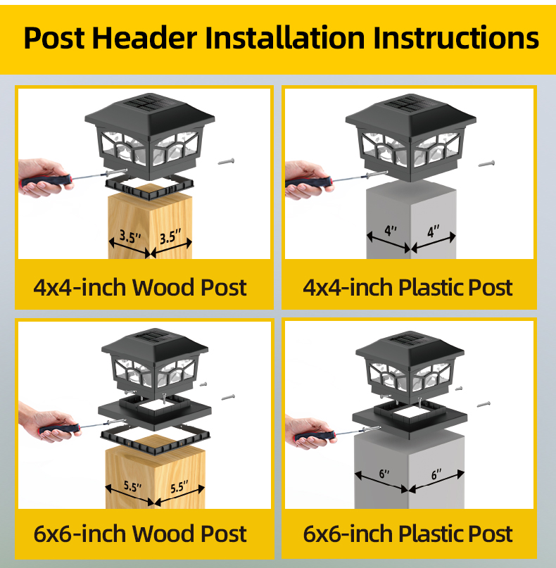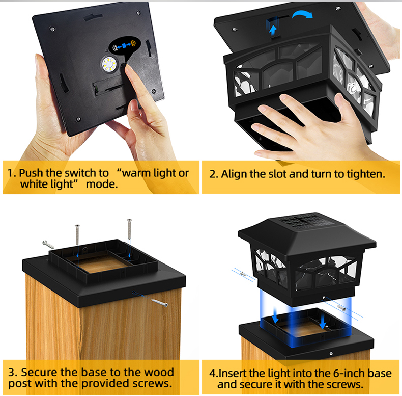 Landsignin Dual Mode Solar Post Cap Light Solar Garden Lightissa on älykäs valoherkkä järjestelmä, vahva vedenpitävä ulkona ja helppo asentaa, sopii pihan sisustamiseen, puutarhaan jne.Kaksi valaistustilaa, voit valita vapaasti suosikkivalaistuksen. Dual Mode Solar Post Cap Light Solar Garden Light voidaan asentaa seinään mukana tulevilla ruuveilla sekunneissa, kaapelia tai lankaa ei tarvita.