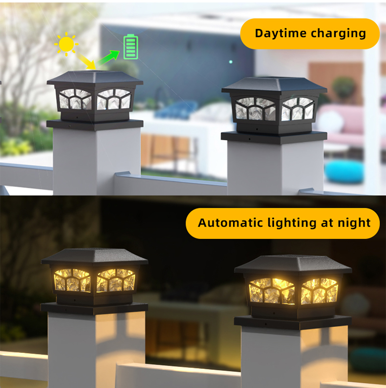 Ominaisuudet Dual Mode Solar Post Cap Light Solar Garden Light: