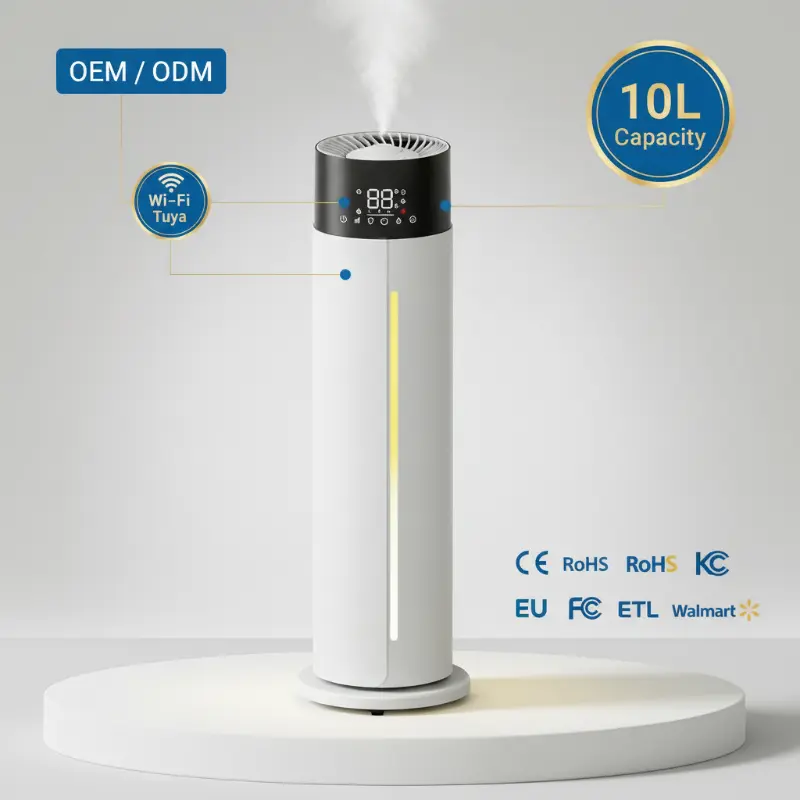 Ehdottomasti kyllä. 8L-10L suuren kapasiteetin kotitalouksien ilmankostuttimet ovat ystävällisempiä lapsiperheille ja lemmikkieläimille verrattuna pienitehoisiin malleihin. Suuri vesisäiliö vähentää veden täyttötiheyttä, välttäen toistuvaa käyttöä ja vahingossa tapahtuvaa lasten kosketusta. Tavalliset kotitalouksien ilmankostuttimet käyttävät hiljaista sumutustekniikkaa, jolla on alhainen melu, mikä ei vaikuta lasten uneen ja lemmikkieläinten lepoon. Lisäksi vakaa ja mukava kosteusympäristö voi lievittää lasten kuivaa nenäonteloa ja ihon kuivuutta sekä vähentää staattista sähköä lemmikkieläinten turkissa. Kostutin on vain asetettava kiinteään nurkkaan pienten lasten ulottumattomiin, jotta se ei kaatuisi.